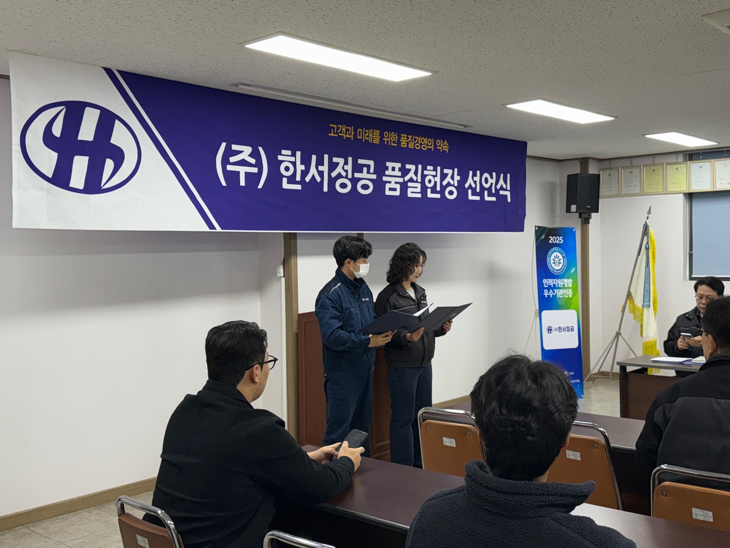 (주)한서정공은 3월 4일 사내에서 전 임직원이 참석한 가운데 "품질헌장 선언식"을 개최하고 품질경영 체계 정착을 위한 전사적 의지를 다졌다.